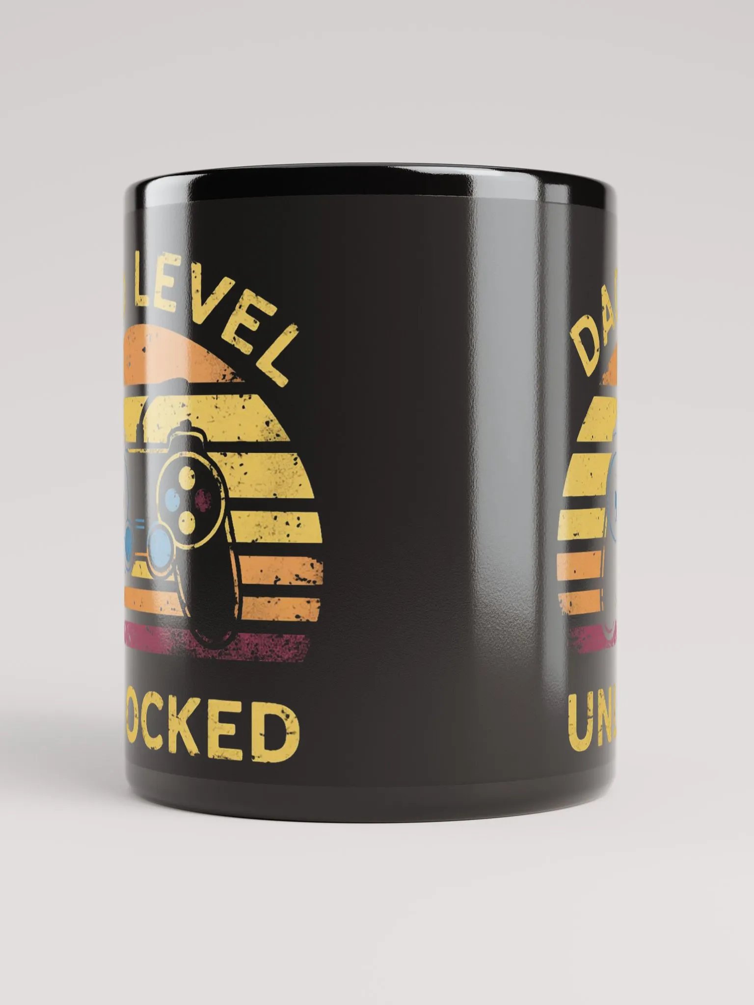 Start your day with a smile and a nostalgic touch with our Dad Level Unlocked Mug. Featuring a glossy black finish and a vibrant, retro video game controller design, this durable ceramic mug is the perfect addition to your morning routine. Not microwave or dishwasher safe.